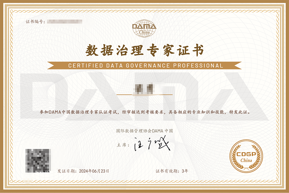DAMA大中华区以国际数据管理协会(DAMA)数据管理知识体系为基础,结合国内实际需求,对DAMA国际数据管理专业人员认证(CDMP)的考试语言、考试形式、考试内容、证书类型等进行了适当本地化重构。推出了数据治理工程师 (CDGA )和数据治理专家 (CDGP )等数据管理专业人士认证,DAMA中国承担认证考试命题工作,并定期组织中文考试,对考试通过者由DAMA大中华区颁发认证证书。