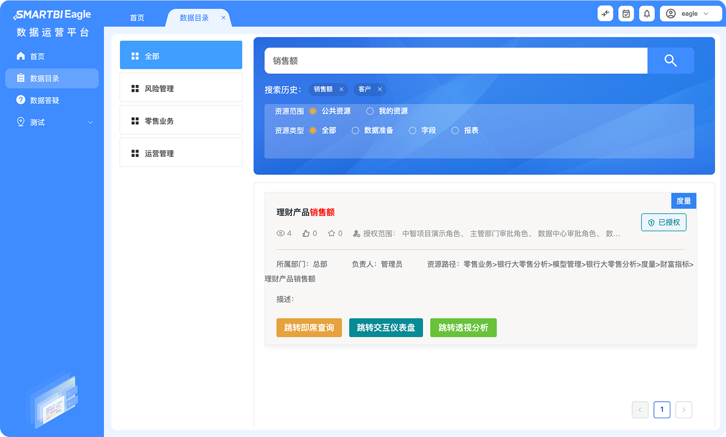 Eagle深度集成Smartbi平台,统一权限与数据标准,实现数据全链条无缝对接